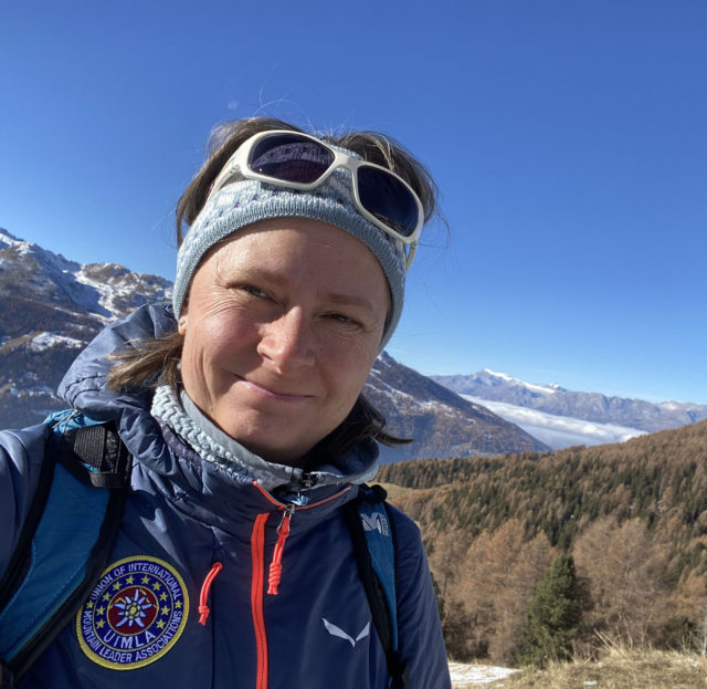 Elle débute la formation d’accompagnatrice en montagne auprès de l’Ecole de St-Jean, en juin 2017 elle obtient avec aisance le titre d’Accompagnatrice en montagne diplômé du Canton du Valais. Ce sera en mai 2022 qu’elle peut fêter son titre d’Accompagnatrice en montagne avec Brevet fédéral lors d’une randonnée final dans le Kiental/BE.